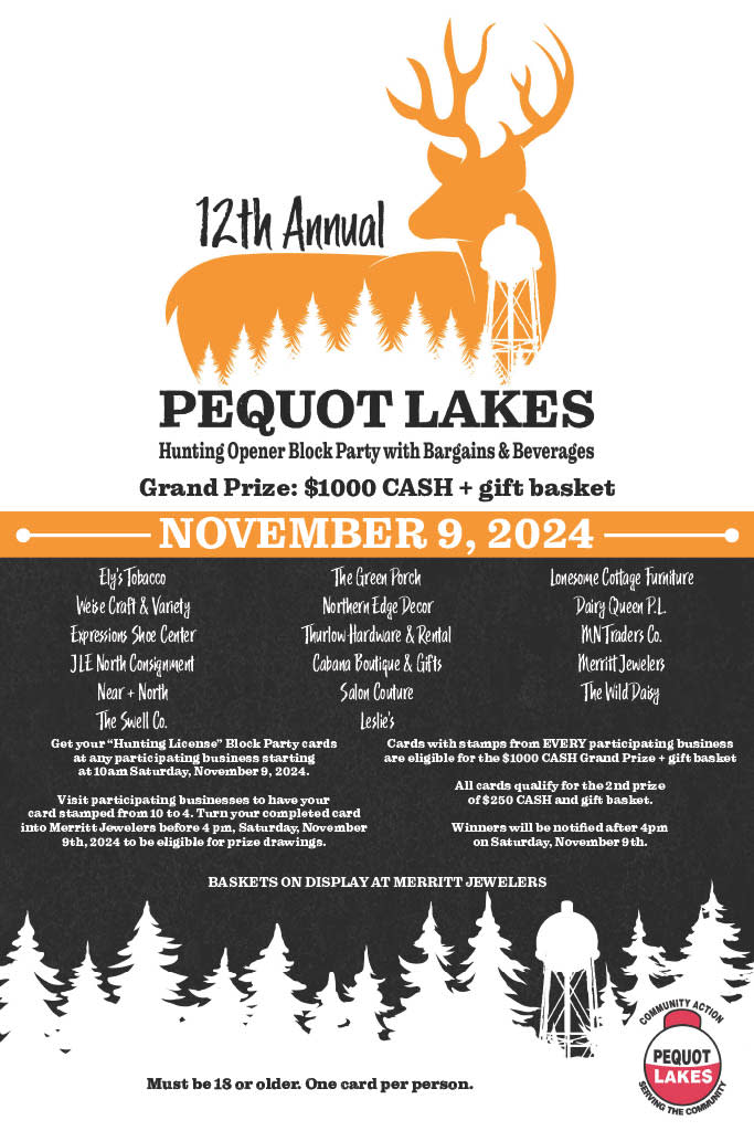 12th Annual Pequot Lakes Hunting Opener Block Party with Bargains and Beverages