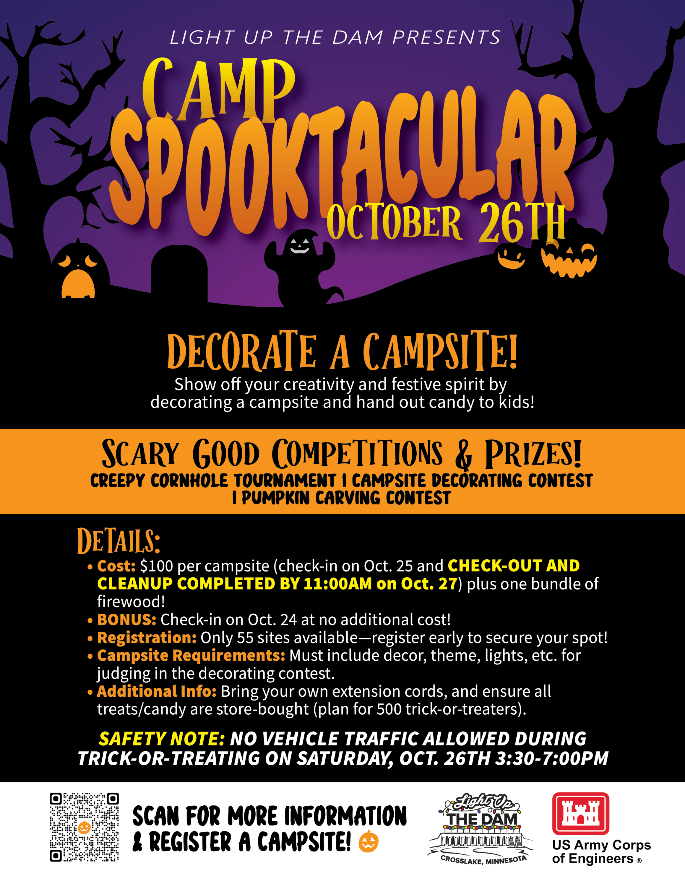 Light Up the Dam presents Camp Spooktacular at the Crosslake Recreation Area!
