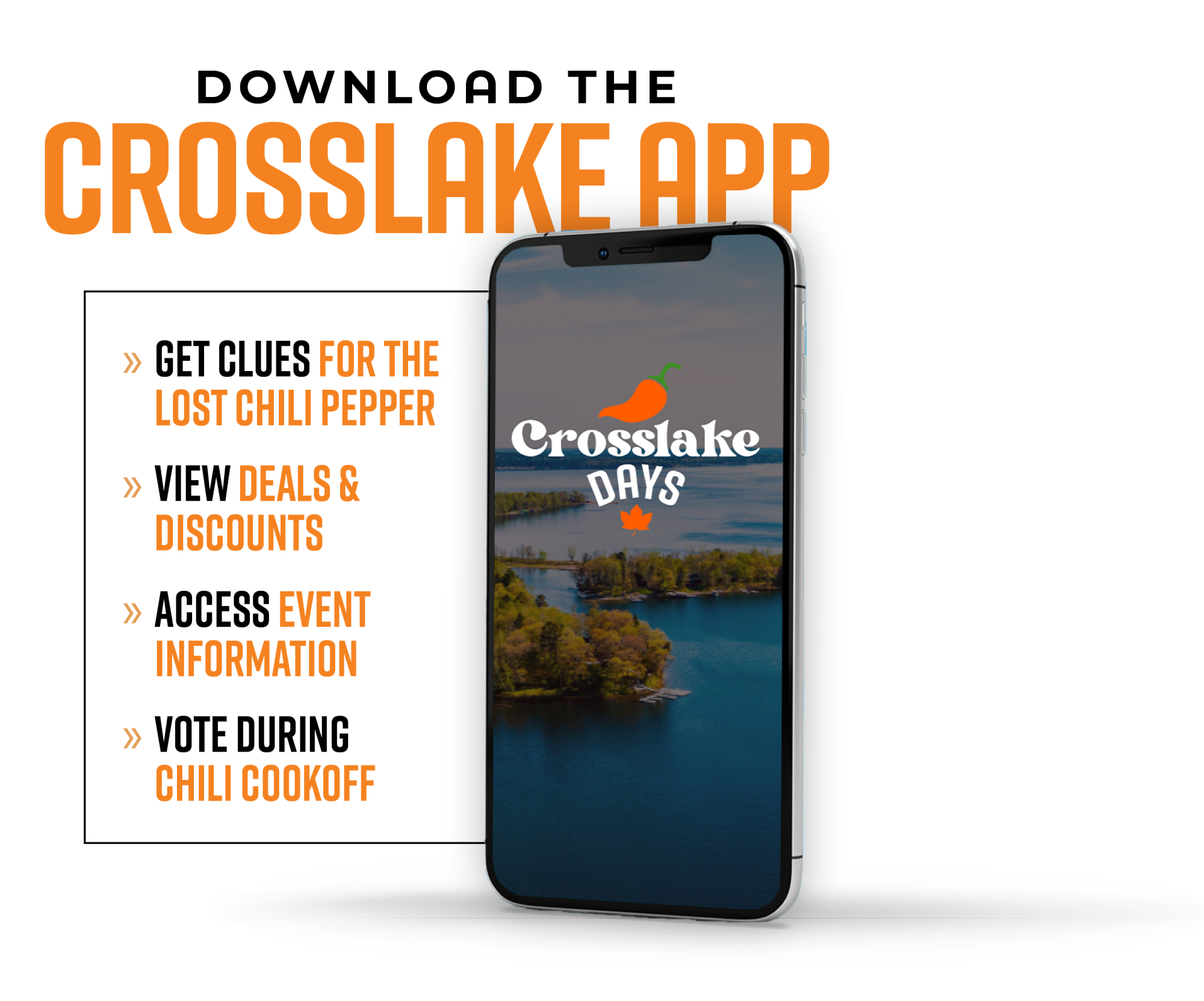 9 AM // Search for the Lost Chili Pepper The first of three daily clues will be released to guide you to the Lost Chili Pepper. Find clues here, the Crosslake App, Crosslake Chamber member businesses and at the Crosslake Chamber Welcome Center.