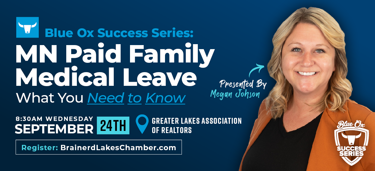 Starting January 1, most employees will be able to take up to 12 weeks of paid family leave and 12 weeks of paid medical leave (maximum of 20 weeks combined) under Minnesota’s new law. Do you know how your business will respond, or what you should be doing now to prepare? Join us for our September Success Series workshop, presented in partnership with Pro Resources and the Lakes Area Human Resources Association. This “members only” session will include a program overview, real-world advice, and plenty of time for Q&A.