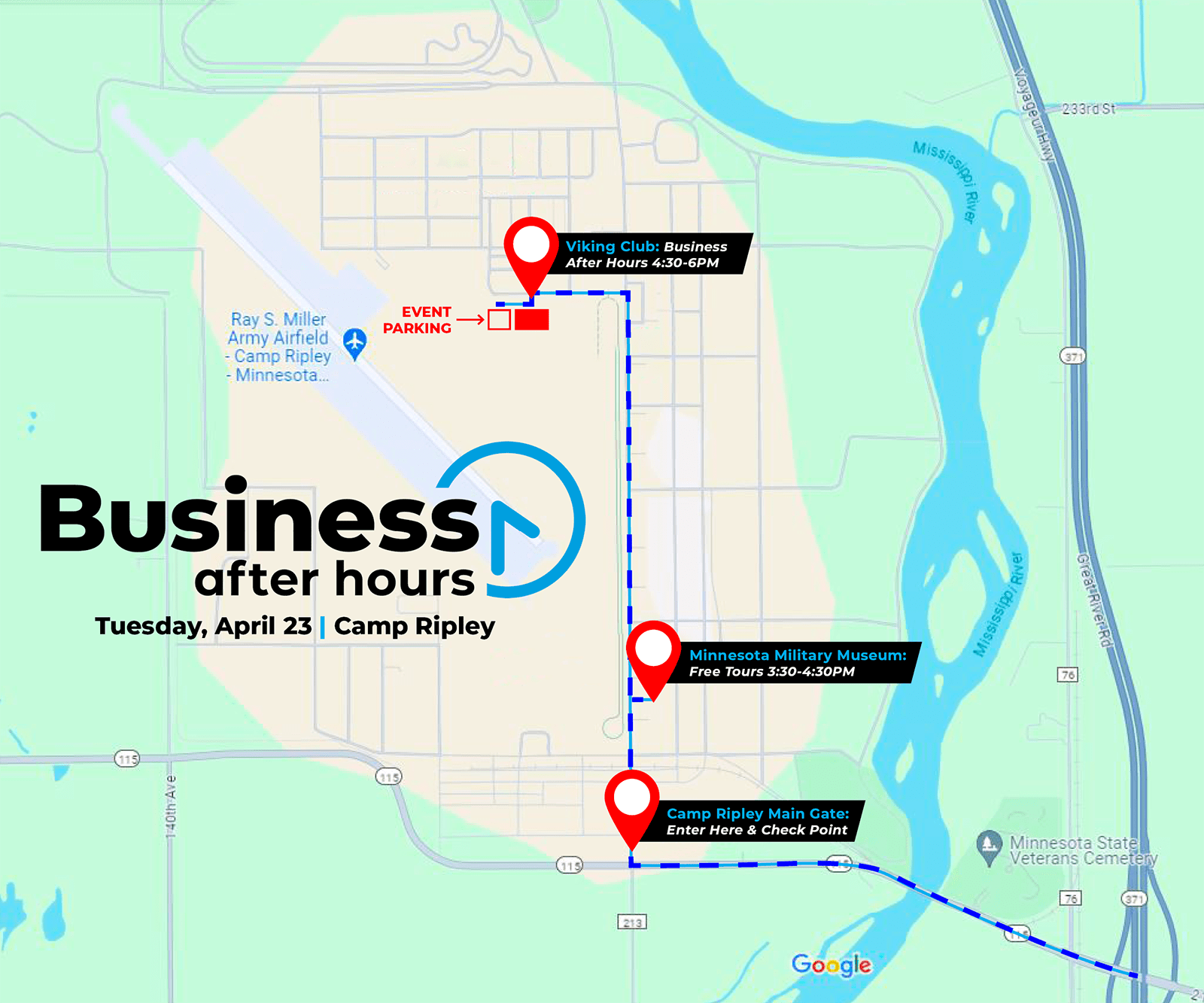 Gather your crew and join us as we support our troops during Business After Hours on Tuesday, April 23! This special Business After Hours is hosted by Camp Ripley – a 53,000-acre military and civilian training facility operated by the Minnesota National Guard. We invite you to expand your network and mix with other Chamber members by attending this free business networking event. Guests will enjoy a variety of delicious appetizers (meat & cheese tray, little smokeys, BBQ meatballs and fruit catered by Coborn's), and beverages (cash bar, water and coffee catered by the Viking Club). Learn more about Camp Ripley from COL Troy Fink, Garrison Commander, during his presentation and interview with Matt Kilian, Brainerd Lakes Chamber President.