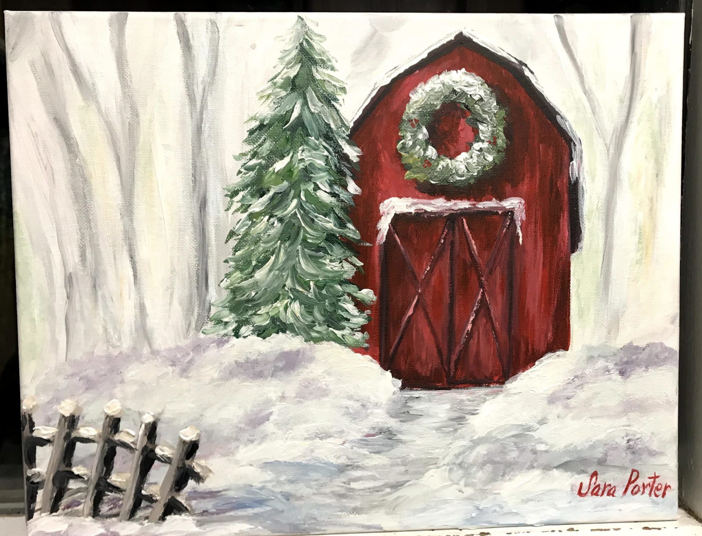 Paint your own charming, red barn scene for Christmas before the hustle and bustle takes all your free time! The barn is pre-outlined for you, unless you request otherwise. Even with the wreath, this is a painting you’ll want to keep on your wall all winter! Ages 16+