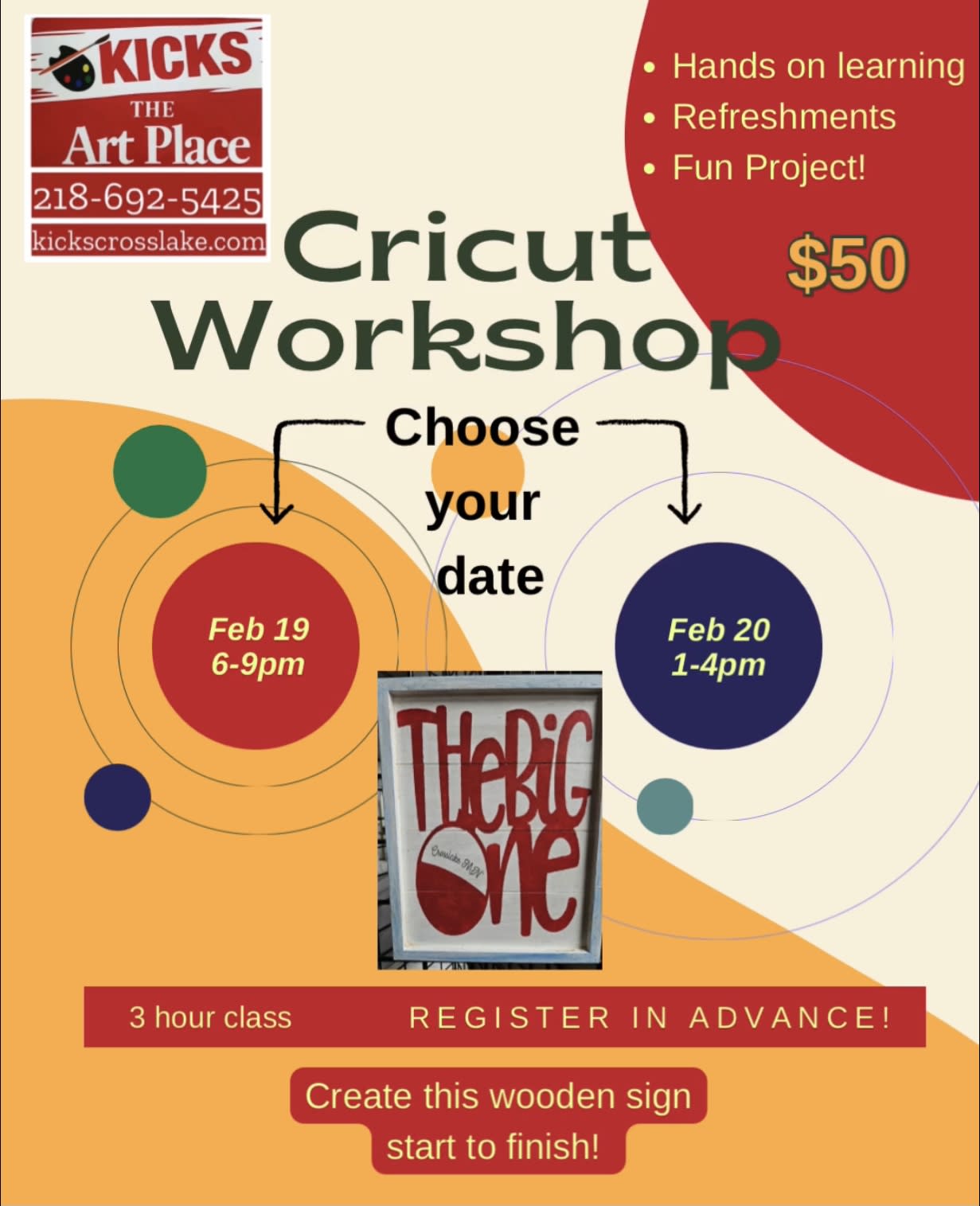 Register at the link: https://kickscrosslake.com/event/cricut-class-2/