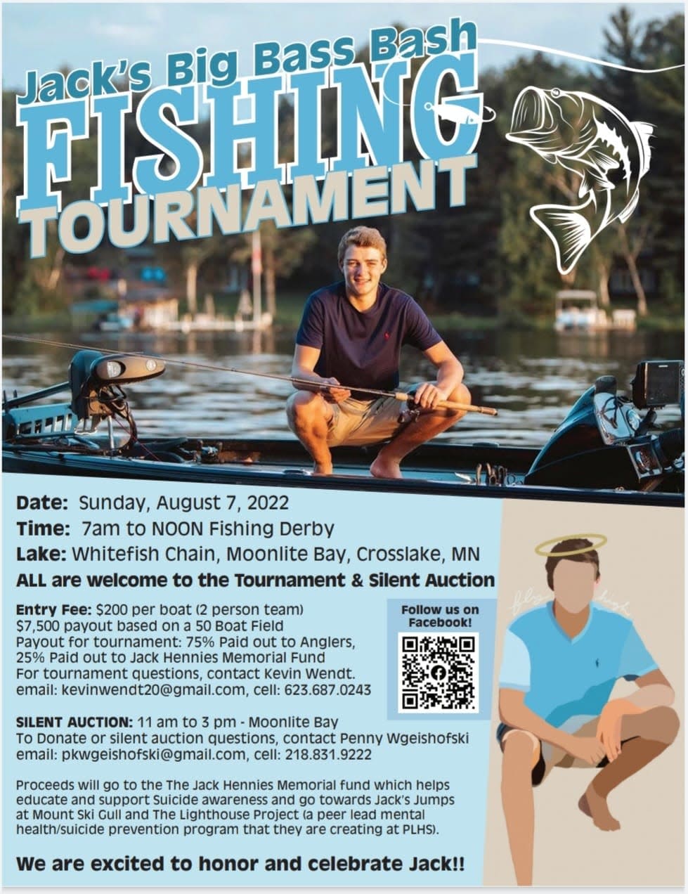 We are excited to host a 50-Boat Bass fishing tournament to raise funds for suicide awareness in our schools and community in honor and memory of Jack Hennies! All Proceeds will go to the Jack Hennies Memorial fund, Donations are welcome!
