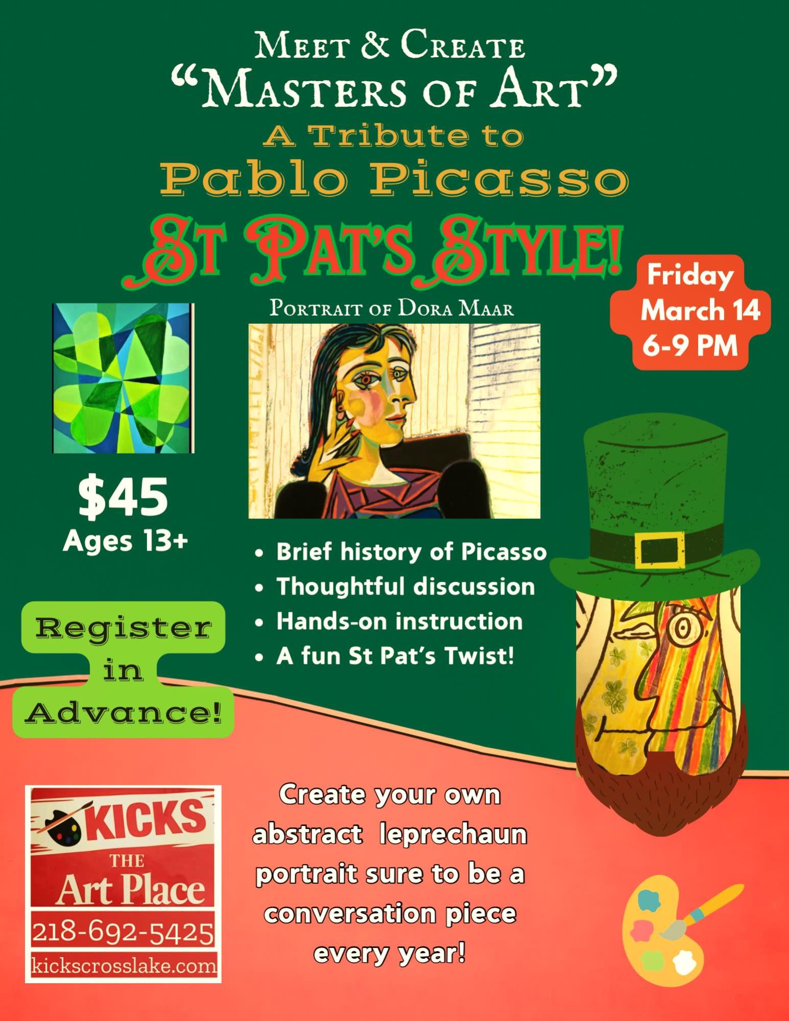 Register at the link: https://kickscrosslake.com/event/meet-the-masters-picasso/