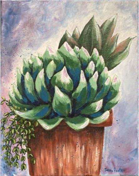 Paint your own arrangement of succulents, step by step with Sara. This painting is acrylic on an 11×14 canvas. Please register in advance! Register in advance HERE.
